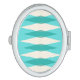 This Mid Century Modern Argyle Oval Compact Mirror features a vibrant, turquoise background and a pattern of mod, translucent teal diamonds overlaying larger, vintage cream diamonds with gold colored, space age speckles. This minimalist inspired, deconstructed argyle is a simplistic throwback of the larger than life atomic era that dominated the decorating landscape of the 1950s and 1960s. This kitschy design is reminiscent of everything from retro Palm Springs’ bowling alley signs to the television trays you used at your grandma’s house.