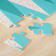 This Mid Century Modern Argyle Puzzle (large print) features a vibrant, turquoise background and a pattern of mod, translucent teal diamonds overlaying larger, vintage cream diamonds with gold colored, space age speckles. This minimalist inspired, deconstructed argyle is a simplistic throwback of the larger than life atomic era that dominated the decorating landscape of the 1950s and 1960s. This kitschy design is reminiscent of everything from retro Palm Springs’ bowling alley signs to the television trays you used at your grandma’s house.