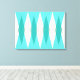 This Mid Century Modern Argyle Stretched Canvas features a vibrant, turquoise background and a pattern of mod, translucent teal diamonds overlaying larger, vintage cream diamonds with gold colored, space age speckles. This minimalist inspired, deconstructed argyle is a simplistic throwback of the larger than life atomic era that dominated the decorating landscape of the 1950s and 1960s. This kitschy design is reminiscent of everything from retro Palm Springs’ bowling alley signs to the television trays you used at your grandma’s house.