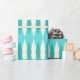 This Mid Century Modern Argyle Wrapping Paper features a vibrant, turquoise background and a pattern of mod, translucent teal diamonds overlaying larger, vintage cream diamonds with gold colored, space age speckles. This minimalist inspired, deconstructed argyle is a simplistic throwback of the larger than life atomic era that dominated the decorating landscape of the 1950s and 1960s. This kitschy design is reminiscent of everything from retro Palm Springs’ bowling alley signs to the television trays you used at your grandma’s house.