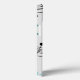 This phone case has a mid-century atomic modern design of boomerang shapes, antennae, and starbursts in teal, magenta, blue, and black.