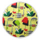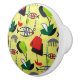 This Mid Century Modern Atomic Fish Design Ceramic Pull features a replica of a vintage 1950's fabric. The background is pale yellow with mobiles in vibrant shades of red, dark green, lime green, black and white. The modern art shapes include everything from the abstract to the fish! There are small red and black fish swimming to the left, while blowing teal bubbles. There are larger black and white fish swimming to the right, while blowing grey bubbles. And there are grey jellyfish, who don't seem to be doing much of anything. This is the perfect design for anyone who loves fish, fabric, and items with a retro feel. It's a blast from the past!