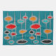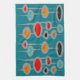Mid-Century Modern Towel in shades of orange, grey, green, gold and teal. Design inspired by mid-century patterns.