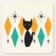 Mid Century Modern Atomic Starbursts Diamonds Cat Square Paper Coaster