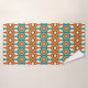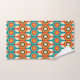 Mid-Century modern bathroom towel. Circle pattern. Colors red, brown, turquoise and yellow.