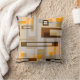 This mid century modern throw pillow features rectangular blocks in brown, tan, apricot orange on a greige background.