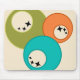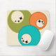 This mouse pad has a mid-century modern design of three circles, orange, green, and turquoise, with white circles inside with three stars in each. If you like the design but prefer different colors, message me.