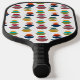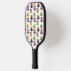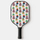 This pickleball paddle has a mid-century modern design of semicircles stacked in three in retro colors on a field of white. Want the same design with different colors? Message me.