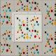 Mid-Century Modern bubbles and sticks in multiple colors relevant to the mid-century time period. Fabric on a light beige/brown background.
