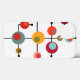 This phone case has a mid-century modern design of bubbles connected on black lines.