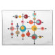 This placemat has a mid-century modern design of bubbles connected on black lines.