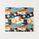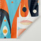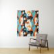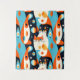Tapestry in a mid-century modern-inspired design featuring two stylized cats in bold, geometric shapes of orange, teal, black, and white. Abstract patterns and retro shapes fill the background, giving it a fun, vintage vibe with a minimalist edge.