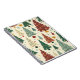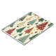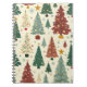 Notebook in a retro, Mid-Century Modern pattern of stylized red and green Christmas trees on a cream background