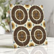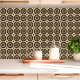 This mid-century modern tile features bold concentric circles in earthy tones of brown, mustard yellow, and cream, accented by minimalist geometric ovals. The retro-inspired pattern brings warmth and character to any backsplash, accent wall, or interior design project. Perfect for creating a vintage-inspired space with a stylish and contemporary twist.
