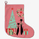 Mid Century Modern Cool Cat Pair & Christmas Tree Large Christmas Stocking