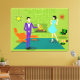 This Mid Century Modern Couple Stretched Canvas Print looks like a scene out of a romantic comedy. The 1960's style, minimalist art design features an attractive cartoon couple enjoying a romantic evening at home. The sophisticated room prominently features a green stone wall with a roaring fire in the fireplace. The furnishings in the room include an orange, lounge chair with matching footstool, a red, starburst wall clock, a yellow, sputnik light fixture, and an orange side table, which is home to a green, portable record player. On the floor beside the end table, a vinyl record can be seen poking out of a kitschy album cover. In the center of the green flooring, there is a large, rectangular, teal rug. In the middle of the scene, we have a very sophisticated couple. There is a suave man in a purple suit, white shirt and blue bow tie. The tall, dark and handsome man is gazing at his lovely companion. The elegant, raven haired woman is wearing a flouncy aqua dress. They are each holding a crystal martini glass with a floating olive. Cheers! Here's to the perfect evening at home!
