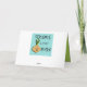 This Mid Century Modern Couple Greeting Card looks like a scene out of a romantic comedy. The 1960's style, minimalist art design features an attractive cartoon couple enjoying a romantic evening at home. The sophisticated room prominently features a green stone wall with a roaring fire in the fireplace. The furnishings in the room include an orange, lounge chair with matching footstool, a red, starburst wall clock, a yellow, sputnik light fixture, and an orange side table, which is home to a green, portable record player. On the floor beside the end table, a vinyl record can be seen poking out of a kitschy album cover. In the center of the green flooring, there is a large, rectangular, teal rug. In the middle of the scene, we have a very sophisticated couple. There is a suave man in a royal blue suit, white shirt and blue bow tie. The tall, dark and handsome man is gazing at his lovely companion. The elegant, raven haired woman is wearing a flouncy aqua dress. They are each holding a crystal martini glass with a floating olive. Cheers! Here's to the perfect evening at home!