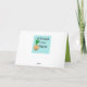 This Mid Century Modern Couple Greeting Card looks like a scene out of a romantic comedy. The 1960's style, minimalist art design features an attractive cartoon couple enjoying a romantic evening at home. The sophisticated room prominently features a green stone wall with a roaring fire in the fireplace. The furnishings in the room include an orange, lounge chair with matching footstool, a red, starburst wall clock, a yellow, sputnik light fixture, and an orange side table, which is home to a green, portable record player. On the floor beside the end table, a vinyl record can be seen poking out of a kitschy album cover. In the center of the green flooring, there is a large, rectangular, teal rug. In the middle of the scene, we have a very sophisticated couple. There is a suave man in a royal blue suit, white shirt and blue bow tie. The tall, dark and handsome man is gazing at his lovely companion. The elegant, raven haired woman is wearing a flouncy aqua dress. They are each holding a crystal martini glass with a floating olive. Cheers! Here's to the perfect evening at home!