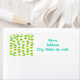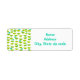 These return address labels have a Mid-century modern design of green half-circles that look like cups strung together with turquoise starbursts and rectangles.