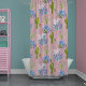 This Desert shower curtain has a mid-century modern desert landscape pattern with classic Sonora desert cactus, modernism landscaping block wall patters and hints of bold colors in geo shapes. You have ocotillos, agave, prickly pear, saguaro and golden barrel cactus in the pattern. The background is a classic 50s mid-century or Palm Springs pink. You can change this background color to ANY COLOR you want in customization, also make the pattern smaller or larger.