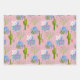 These Desert wrapping paper sheets have a mid-century modern desert landscape pattern set with classic Sonora desert cactus, modernism landscaping block wall patters and hints of bold colors in geo shapes. You have ocotillos, agave, prickly pear, saguaro and golden barrel cactus in the pattern. The background is a classic 50s mid-century or Palm Springs pink, you can change this background color to any color you want in customization, also make the pattern smaller or larger. The other two collaborating patterns also change size and color.