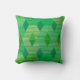 Throw pillow in an abstract, Mid-Century Modern, warp print of diamond shapes, with a horizontal striped texture, in shades of deep to pastel jade green and lime green