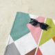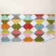 This beach towel has diamonds and triangles forming diamonds overlapping each other.
