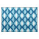 Placemat in a Mid-Century Modern diamond pattern of nested marquise shapes - medium denim blue and light sky blue, with white, and dark navy / indigo accents
