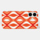 Phone case in a Mid-Century Modern diamond pattern of nested marquise shapes - light and deep coral orange, with white, and dark mandarin orange accents