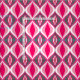 Fabric in a Mid-Century Modern diamond pattern of nested marquise shapes - shades of pastel pink, fuchsia and gray / grey, accented with white