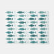 A retro 1950s abstract pattern with turquoise and teal fish and bubbles.