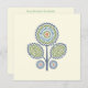 Pictured above is our Mid-Century Modern Floral Note Card in Blue with Green and Orange Accents. This 5.25 x 5.25 inch note card features a eye-catching, multicolored floral motif. This design can be customized by you to change the artwork size and the background can be changed to different colors as well. The backside can be customized with your name or with some else's name to give as a gift. The backside has enough blank space to write a short personal message. Optional white envelopes are also available.
