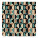 Retro Mid Century Geometric Half Square and Circle Pattern Black Beige and Turquoise.
