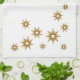 This simple kitchen towel features a minimalistic clean mid-century modern inspired gold starburst design. An organic geometric starburst design of sparkly golden stars on a white background. Each starburst features a light golden star overlapping with a larger sparkly copper starburst to create a white circle in the center.