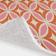 This is elegant minimalist Mid Century Modern geometric circles with atomic stars shapes in orange and pink. It's great looking rug for anyone who love retro geometric designs