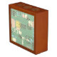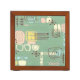 Jeepers! If you're a fan of mid century modern style and books, you'll go positively ape for this Mid Century Modern Graphic Design Desk Organizer. The design features a replica of a vintage fabric with cool graphics. The background is jade green with kitschy designs in ecru, brown, yellow, blue and pink.