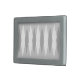 This Mid Century Modern Grey Argyle Belt Buckle features a dove grey background and a pattern of mod, translucent, dark grey diamonds overlaying larger, vintage white diamonds with grey colored, space age speckles. This minimalist inspired, deconstructed argyle is a simplistic throwback of the larger than life atomic era that dominated the decorating landscape of the 1950s and 1960s. This kitschy design is reminiscent of everything from retro Palm Springs’ bowling alley signs to classic TV shows to the television trays you used at your grandma’s house.