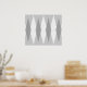 This Mid Century Modern Grey Argyle Poster features a dove grey background and a pattern of mod, translucent, dark grey diamonds overlaying larger, vintage white diamonds with grey colored, space age speckles. This minimalist inspired, deconstructed argyle is a simplistic throwback of the larger than life atomic era that dominated the decorating landscape of the 1950s and 1960s. This kitschy design is reminiscent of everything from retro Palm Springs’ bowling alley signs to classic TV shows to the television trays you used at your grandma’s house.