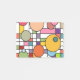 These notes have a mid-century modern design of a grid with some rectangles colored in and circles on top in retro colors.