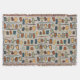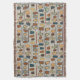 A cozy cute throw blanket with a pattern inspired by mid century modern, in retro colors.