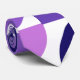 This tie has a mid-century modern design of quarter and half circles in shades of purple.