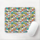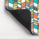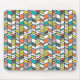 This mouse pad has a mid-century modern design of herringbone with retro colors and lines filling some of the spaces.