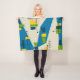 Mid-Century Modern Inspired Fleece Blanket, designed according to the mid-century and atomic era time period in colors of blue, yellow, black and lime green.