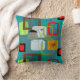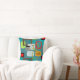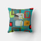 Mid-Century Modern Pillow, abstract design in black, red, lime green and grey on an teal blue background. Perfect for any mid-century modern decor.