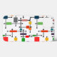 This phone case has a mid-century modern design of a large grid of horizontal and vertical black lines with colorful rectangles.
