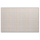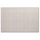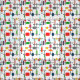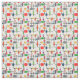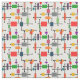 This fabric has a mid-century modern design of a large grid of horizontal and vertical black lines with colorful rectangles.