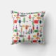 This throw pillow has a mid-century modern design of a large grid of horizontal and vertical black lines with colorful rectangles.