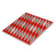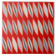 Tile in a Mid-Century Modern design of abstract leaves in shades of light silver gray / grey to medium gray,accented with graphite gray and tomato red, on a dark Chinese red background