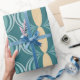 A mid 20th century-inspired abstract art pattern with with melon shapes in shades of teal and turquoise.