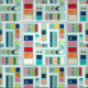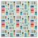 This fabric has a mid-century modern design of rectangles with rectangles, squares, boomerangs, stars, or starbursts inside. If you like the design but prefer different colors, message me.